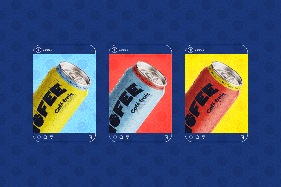 Canofee ne cherche pas à reproduire les codes classiques du café. L’identité visuelle s’appuie sur des couleurs vives, assumées, et des compositions graphiques simples mais impactantes. L’objectif était de transmettre une sensation de fraîcheur immédiate, en cohérence avec le produit, tout en laissant de la place à l’expression des différentes saveurs.