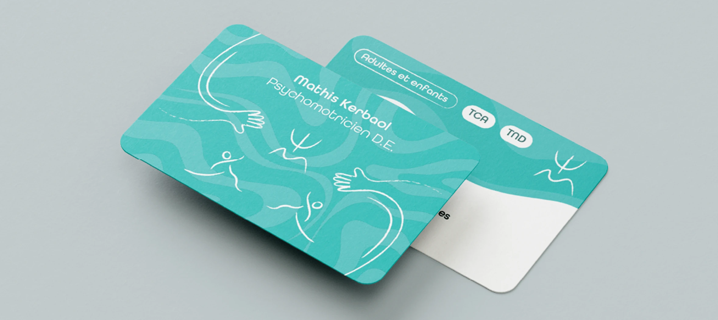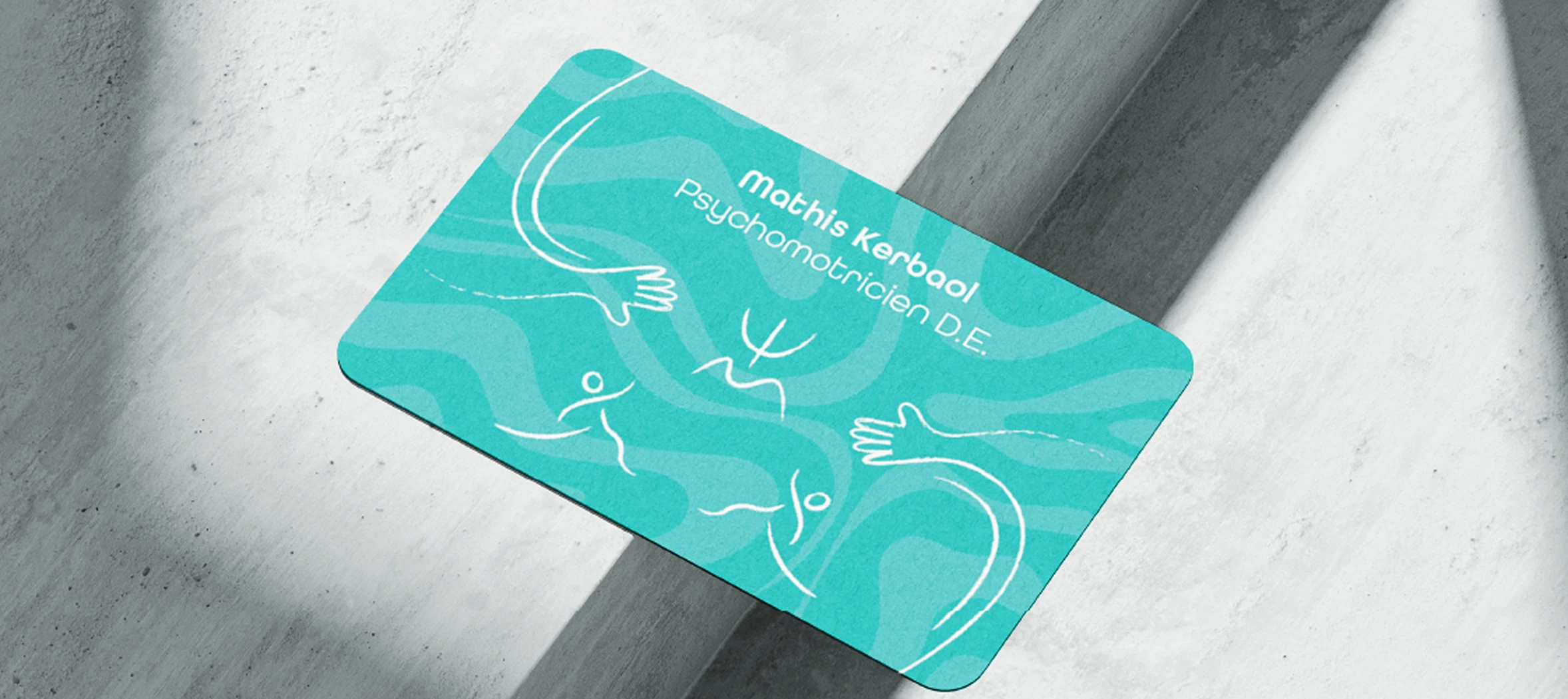 Les éléments graphiques jouent un rôle central. Le symbole associe le Psi, représentant la psyché, et la lettre M pour la motricité, afin d’exprimer le lien indissociable entre le corps et l’esprit. Les illustrations, réalisées dans un style de fusain effilé, évoquent la rééducation, le mouvement et l’expression corporelle. Les mains et la silhouette en mouvement illustrent le soutien, l’accompagnement et la progression thérapeutique.