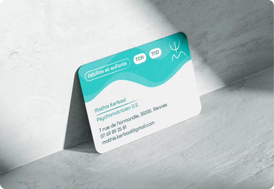 Le travail graphique repose sur une palette de couleurs choisie pour créer une ambiance apaisante et dynamique, traduisant à la fois le calme, le mouvement et le professionnalisme. La typographie, aux formes arrondies et lisibles, renforce cette sensation de fluidité et d’accessibilité.