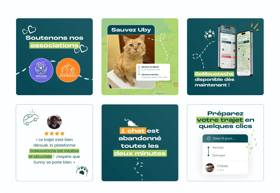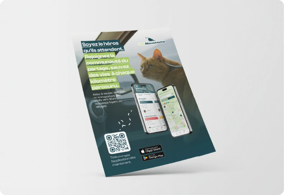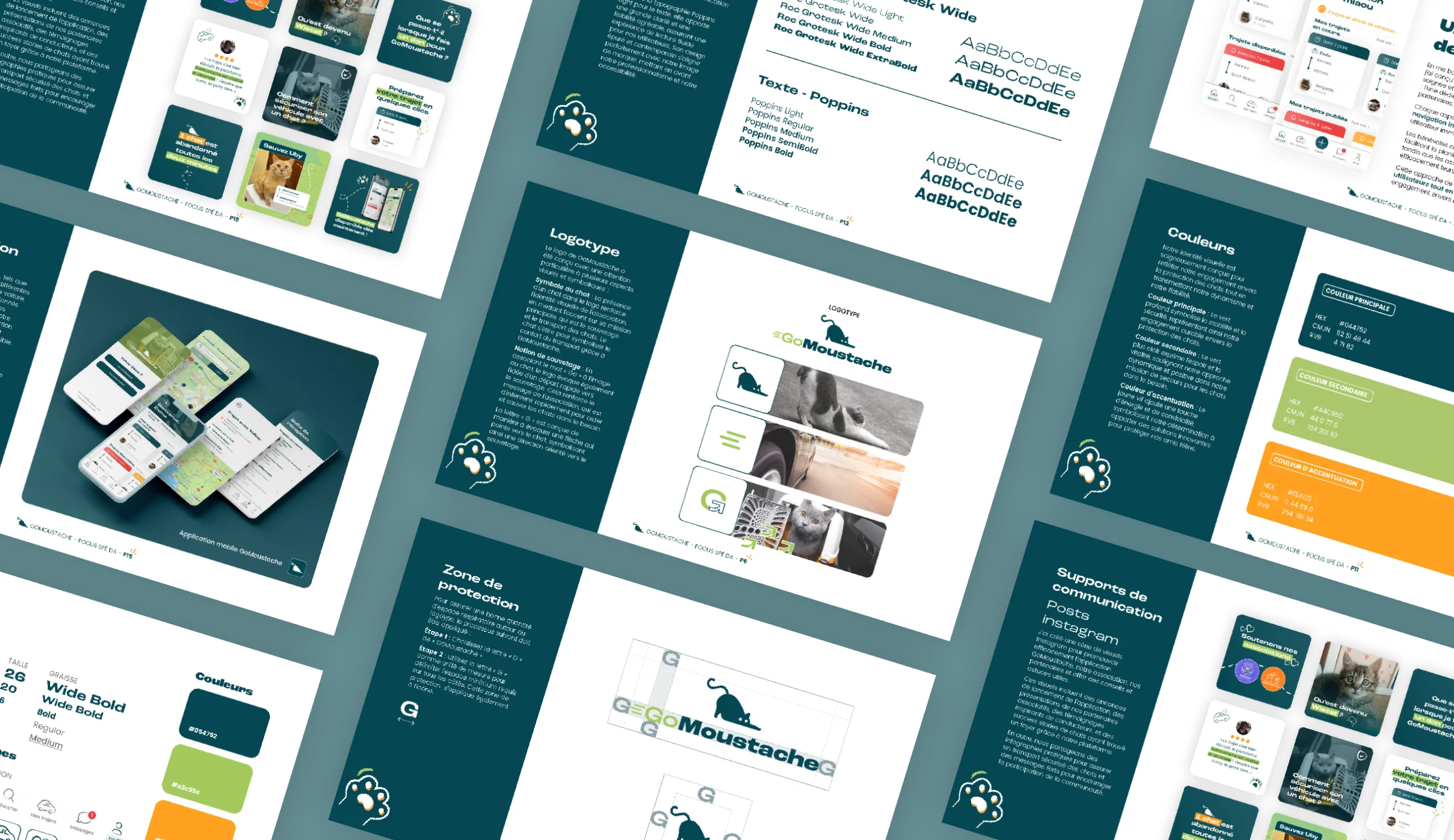 L’identité visuelle de GoMoustache permet de structurer l’ensemble du projet, de la communication associative à l’interface de l’application.