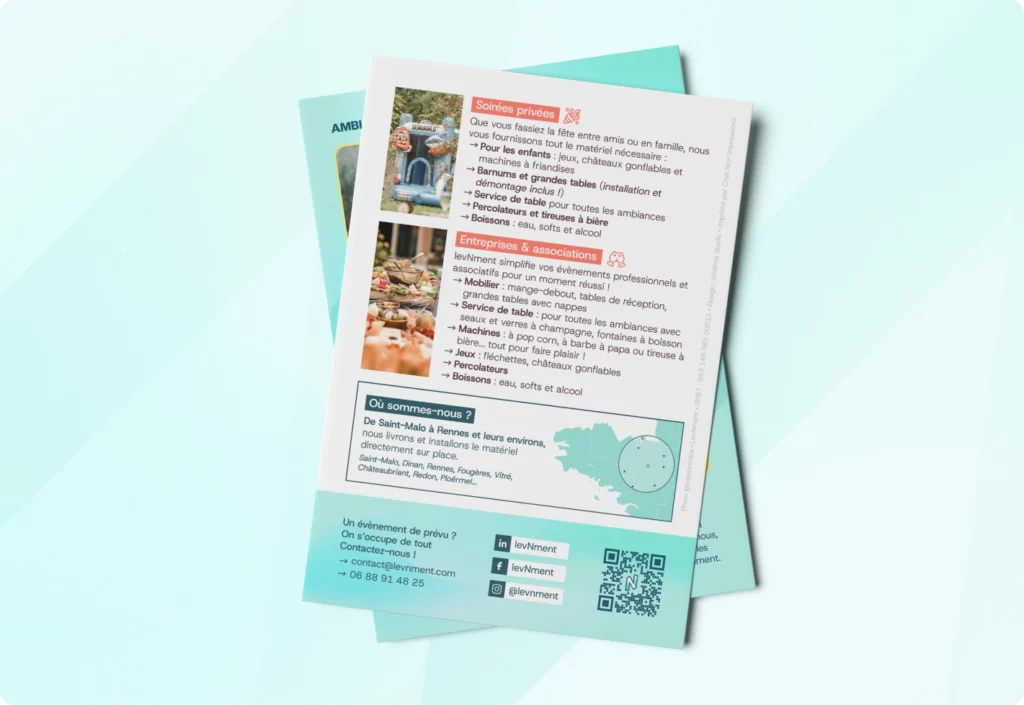 Le travail s’est concentré sur la hiérarchisation des informations, la clarté des messages et la cohérence graphique, afin que chaque support s’inscrive dans un même système visuel. L’objectif était de permettre une lecture rapide, une compréhension immédiate de l’offre et une identification claire de la marque, quel que soit le point de contact.