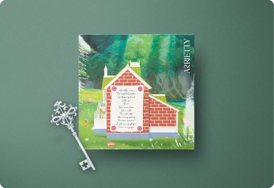 La direction artistique s’appuie sur une immersion totale dans l’univers d’Arrietty. Chaque choix graphique a été pensé pour prolonger l’histoire au-delà de la musique.