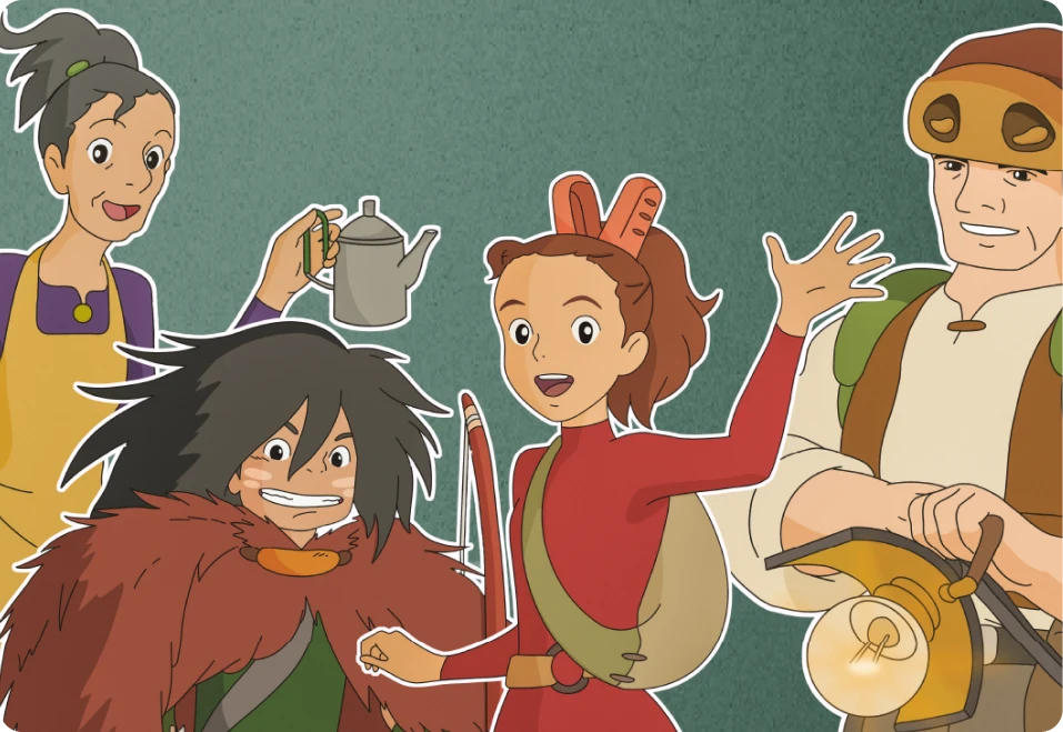 L’illustration centrale, s’inspire directement des décors du film. Le travail sur les textures, les détails et la lumière vise à recréer une atmosphère chaleureuse et feutrée, fidèle à l’esthétique du Studio Ghibli. La colorimétrie a ensuite été affinée afin d’obtenir un rendu proche du cinéma, avec des teintes douces, légèrement granuleuses.